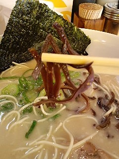 麺は何も言わなくても固め。スープはほのかにブタ臭さが香ります。